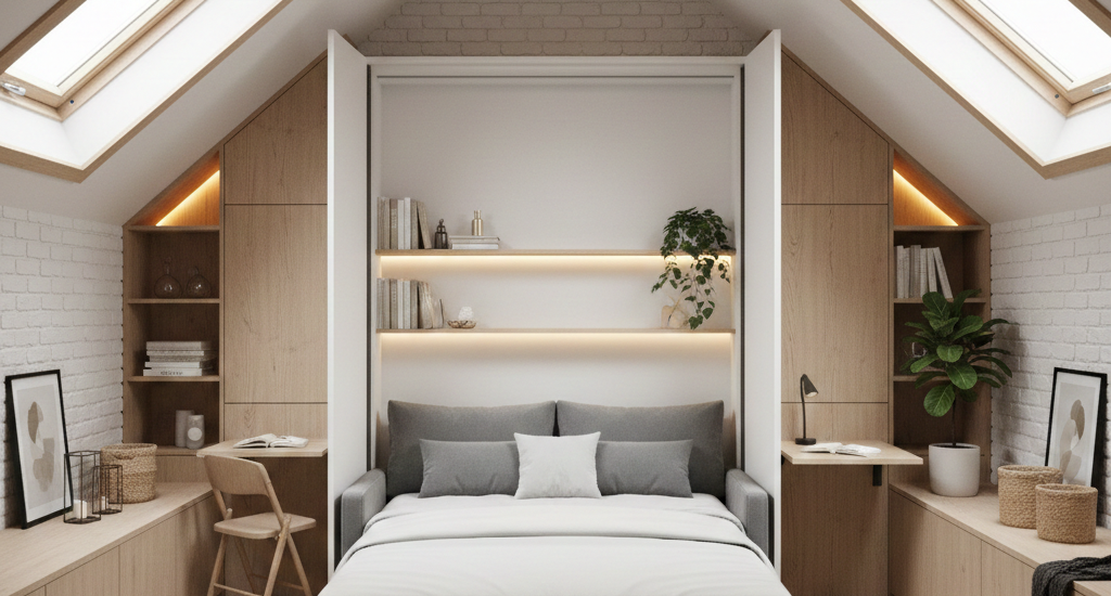Idées pratiques pour intégrer des lits escamotables dans des plafonds bas et inclinés